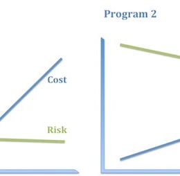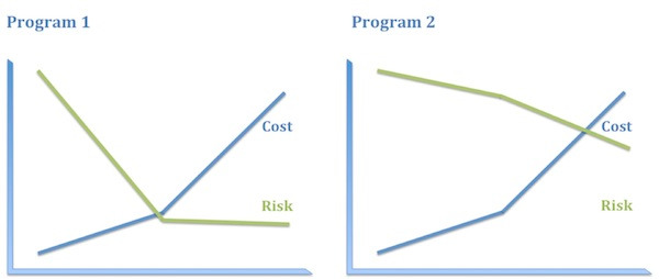 I think most people would say that Program 1 is the riskier program. But consider where the risks actually lie in these programs, how they are distributed, and how much it will cost to discharge them.